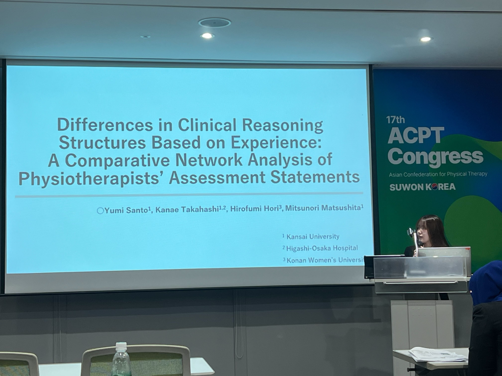 2026年4月11日(土),12日(日)に,韓国の水原市にある水原コンベンションセンターで開催されたACPT Congress2026にて,「Differences in Clinical Reasoning Structures Based on Experience: A Comparative Network Analysis of Physiotherapists’ Assessment Statements」というタイトルで研究発表を行いました.